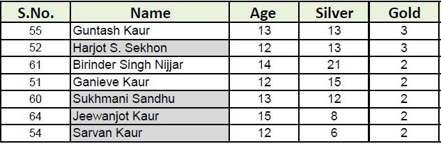 - Guntash Kaur (Age 13) – Tav Parsad Sawaiye